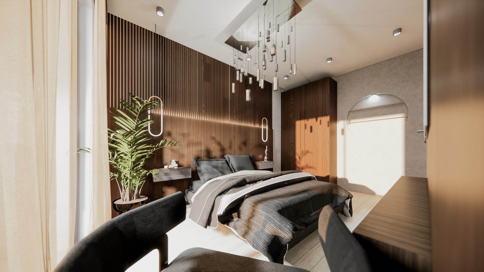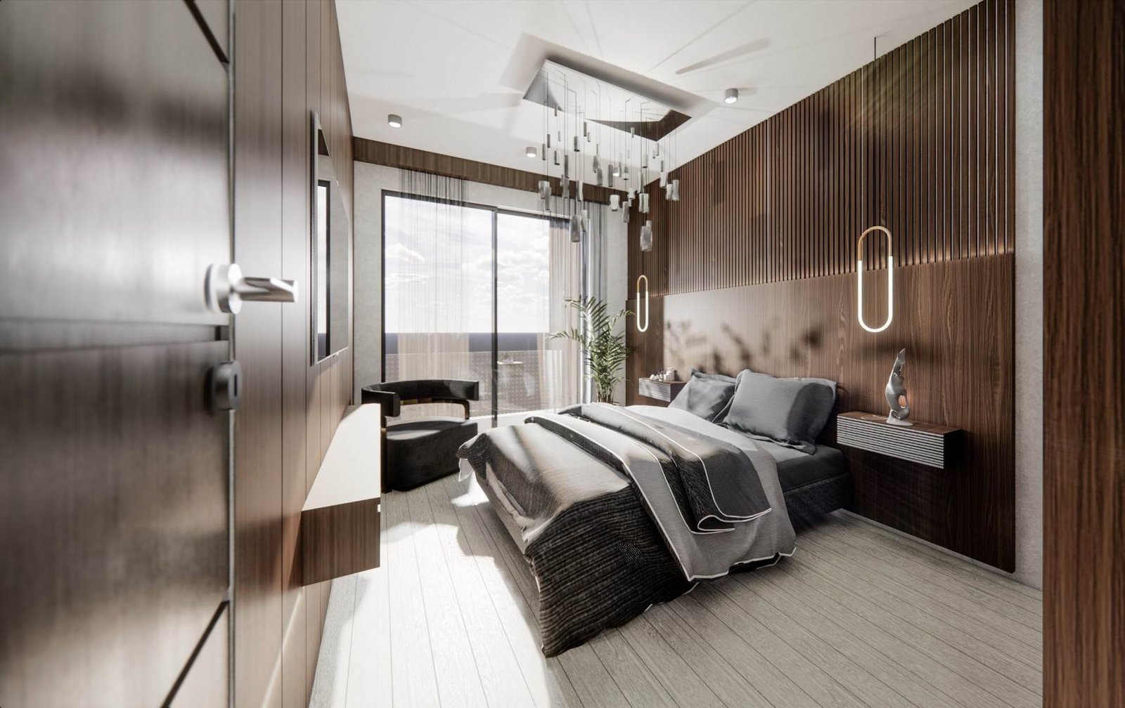 Dairelerimizde kullanılan yüksek kaliteli ahşap oda kapıları, doğal dokusu ve sıcak renkleriyle yaşam alanlarınıza estetik bir dokunuş katar. Ses yalıtım özellikleri sayesinde daire içinde mahremiyeti artırırken, uzun ömürlü ve dayanıklı yapılarıyla konforlu bir kullanım sunar.